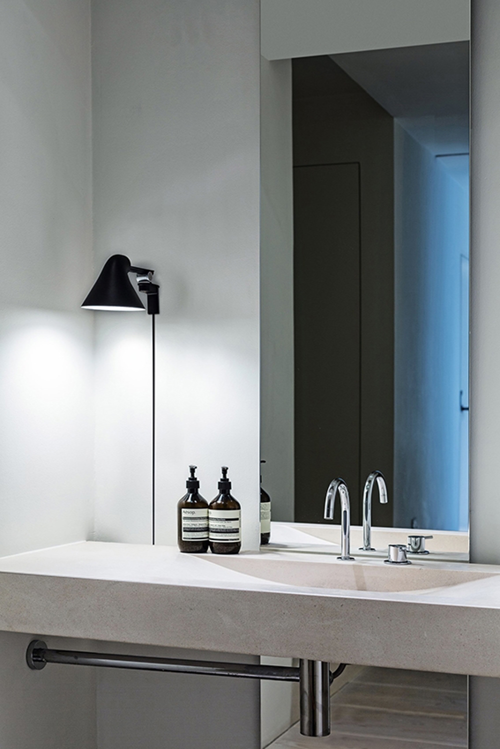 Louis Poulsen NJP kinkiet z krótkim ramieniem, jasny alu szary - zaprojektowany przez nendo - Oki Sato.