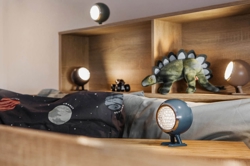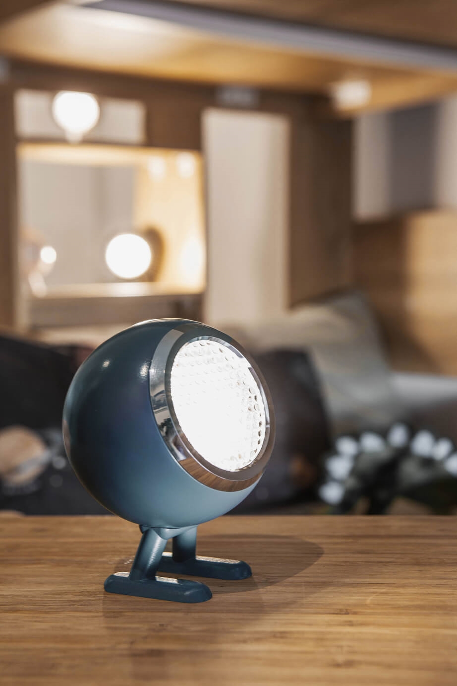 Sprytne daszki, piękne rzęsy i urocze uszy można kupić osobno i magnetycznie przymocować do Norbitta, nadając lampie na baterie zabawny wygląd.
