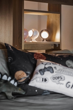 Sprytne daszki, piękne rzęsy i urocze uszy można kupić osobno i magnetycznie przymocować do Norbitta, nadając lampie na baterie zabawny wygląd.