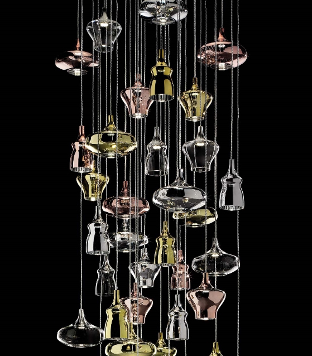 Lampa wisząca może być zawieszona samodzielnie lub w grupie lamp wiszących, zarówno identycznych, jak i w różnych rozmiarach i kolorach. Lampa wisząca dostępna jest w czterech kolorach: przezroczystym/kryształowym, chromowym, złotym i różowozłotym, a wszystkie kolory wzajemnie się uzupełniają, co pozwala na ich mieszanie między modelami.