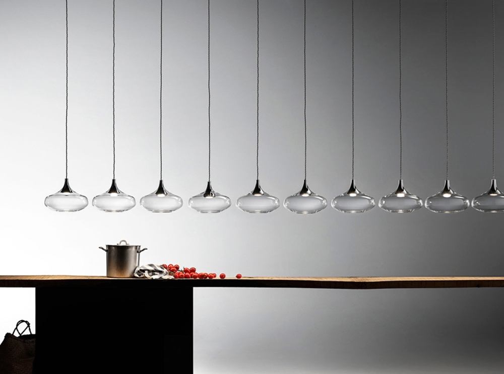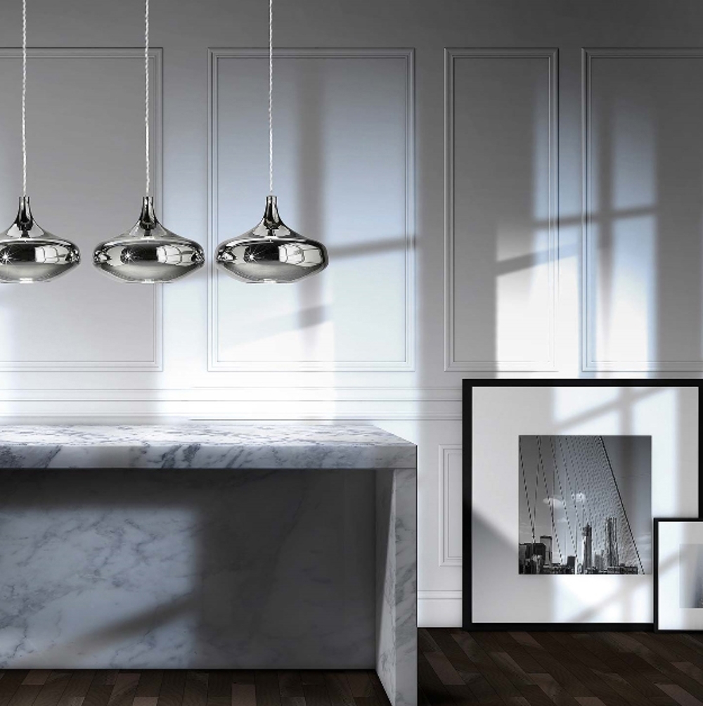 Lampa może być zawieszona samodzielnie lub w grupie lamp, zarówno identycznych, jak i w różnych rozmiarach i kolorach. Lampa dostępna jest w czterech kolorach: przezroczysty/kryształ, chrom, złoto i rosegold, a wszystkie kolory wzajemnie się uzupełniają, co pozwala na ich mieszanie między modelami.