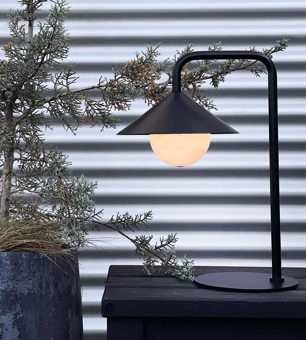 Lampa stołowa Nova Outdoor łączy nowoczesne nordyckie wzornictwo z praktyczną funkcjonalnością w lampie stworzonej po to, by towarzyszyć Ci wszędzie. Charakterystyczny, stożkowy klosz otacza zdejmowaną kulę świetlną, którą elegancko utrzymuje na miejscu mocny magnes. Po zdjęciu kula może służyć jako niezależne źródło światła – idealne do tworzenia małych punktów świetlnych w ogrodzie lub we wnętrzu.