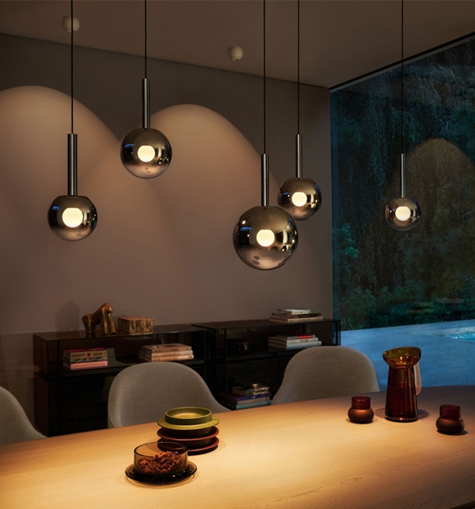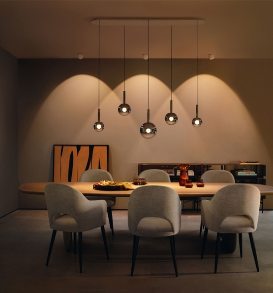 Każda kula zawiera technologię Fireball Occhio, która zapewnia mocne oświetlenie LED bez oślepiania i z przyjemnym, skierowanym w dół rozkładem światła. Światło można regulować za pomocą sterowania bezdotykowego lub aplikacji Occhio Air, a temperaturę barwową można dostosować w zakresie od 2700K do 4000K. Można dokupić fizyczny pilot.