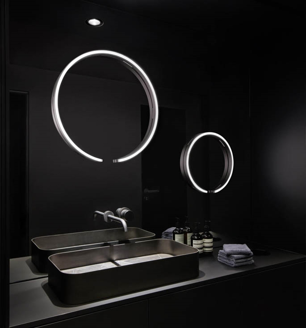 Mito sfera su doskonale pasuje do łazienki, przedpokoju lub salonu dzięki swojemu funkcjonalnemu i ekskluzywnemu designowi. Lampa jest niezwykle innowacyjna i inteligentna, ponieważ światło można łatwo przyciemniać, a temperaturę barwową zmieniać za pomocą »touchless control« od 2700 do 4000 Kelvinów.