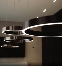 Super ekskluzywna, prosta i elegancka lampa wisząca LED o średnicy 40 cm z dużą łatwością obsługi i najwyższą technologią oświetleniową.