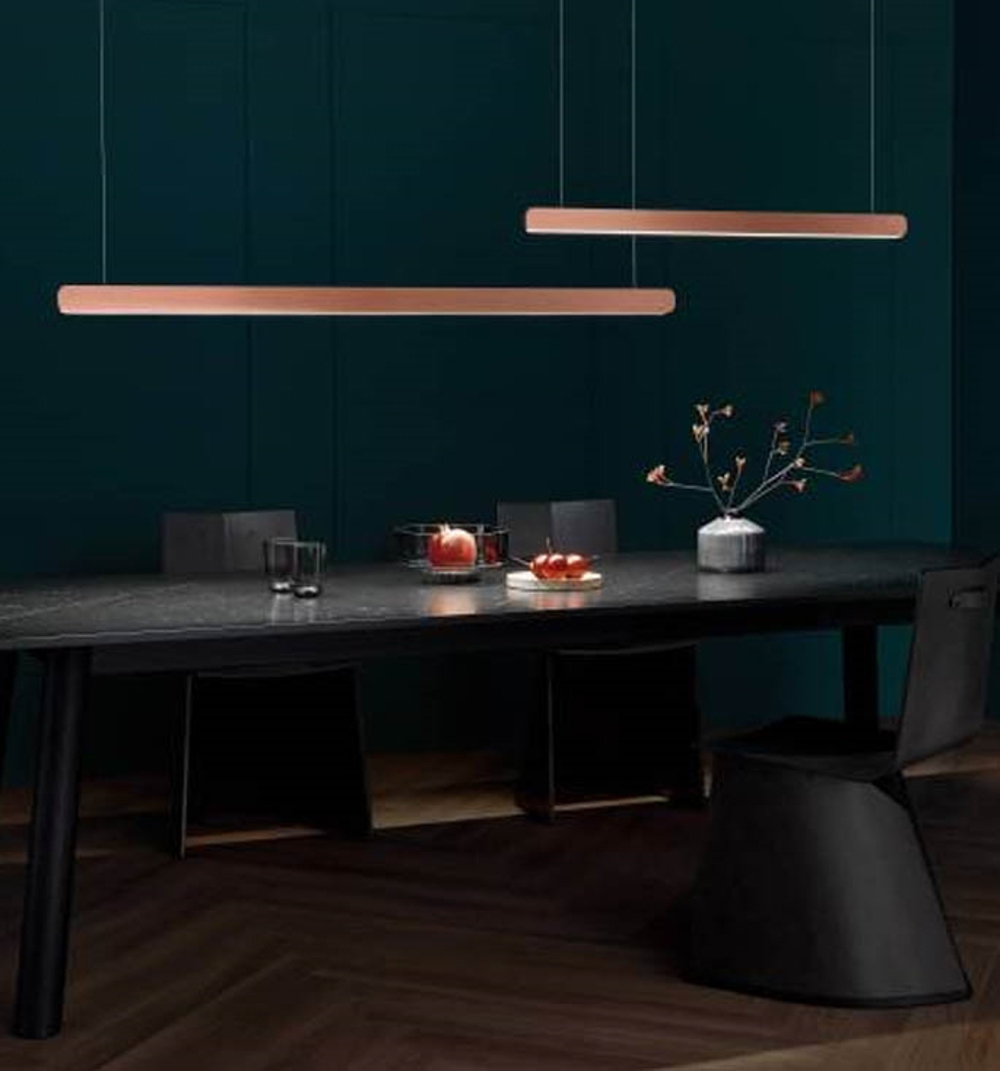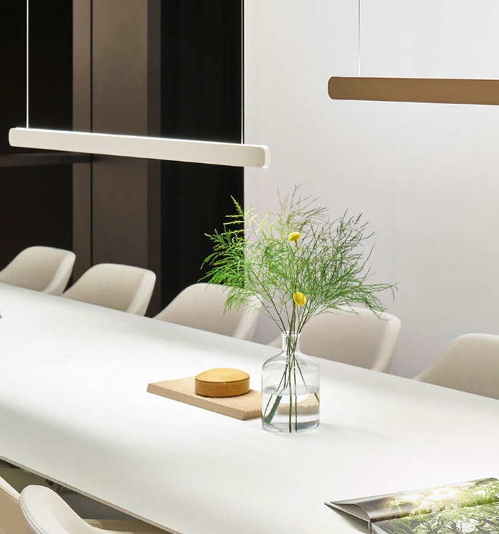 Mito Volo oferuje wyjątkowe dwustronne oświetlenie, które oświetla zarówno stół, jak i pomieszczenie. Lampa może być montowana z regulowaną wysokością od 65 do 165 cm.