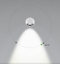 Luksusową lampę Sito Basso można wybrać z temperaturą barwową 2700K lub 3000K, aby dopasować ją do swoich potrzeb. Ponadto, Sito Basso dostępna jest z trzema różnymi rozkładami światła - wariant C80 zapewnia światło o kącie 80 stopni z konturem, wariant S80 daje miękkie światło o kącie 80 stopni, a S40 daje miękkie światło o kącie 40 stopni.