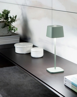 Zafferano Ofelia Pro lampa bateryjna/lampka stołowa, szałwiowa zieleń