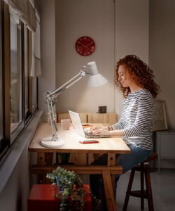 Idealna lampa biurkowa do domowego biura, miejsca pracy lub studia, gdzie elastyczność, komfort i estetyka idą w parze. Dostępna w kolorze czarnym lub białym z podstawą lub z klamrą do stołu.
