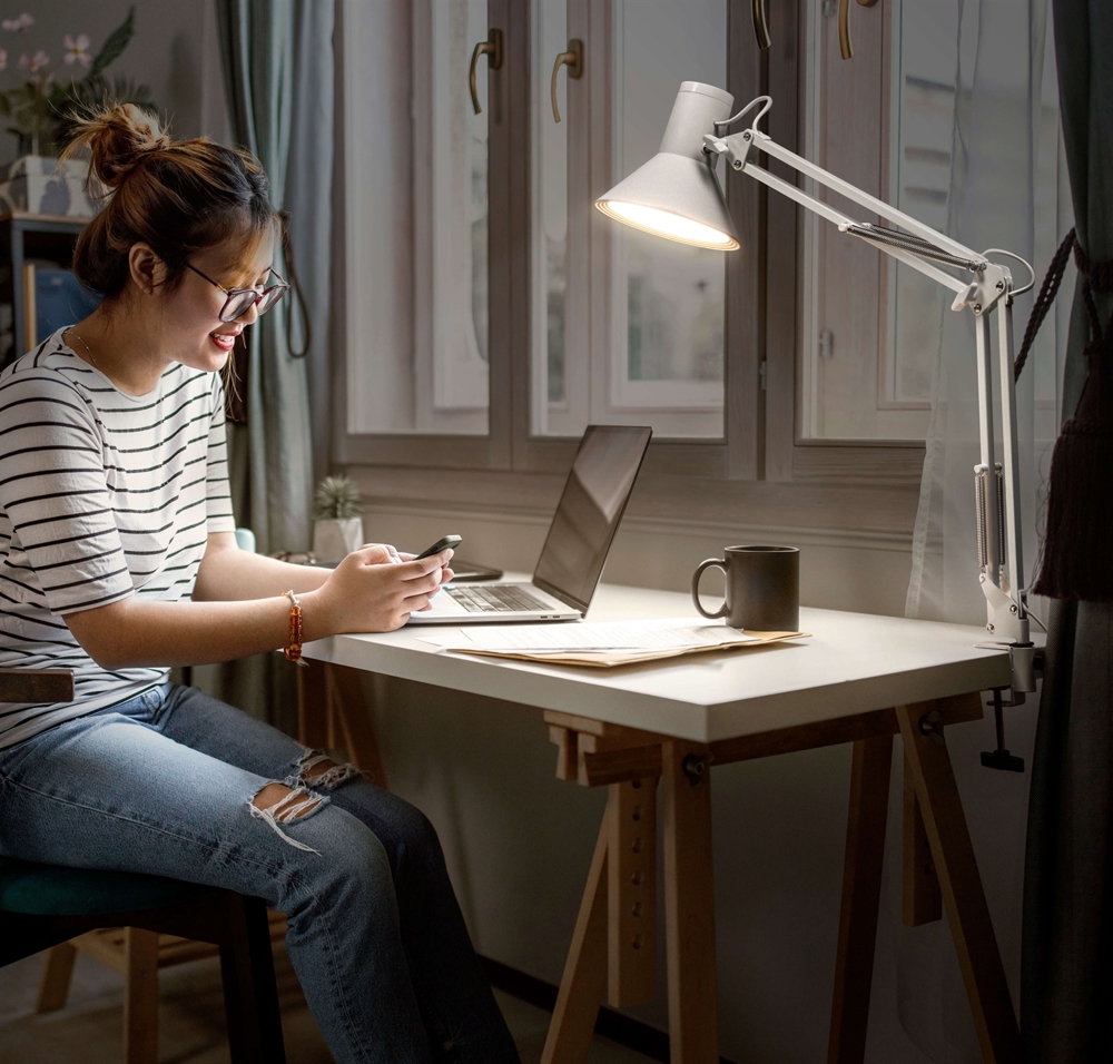 Długa, regulowana ramię i ruchoma głowica lampy ułatwiają dostosowanie światła do potrzeb – niezależnie od tego, czy pracujesz przy komputerze, piszesz ręcznie, czy skupiasz się na szczegółowej pracy. Jasność można regulować płynnie, aby zawsze znaleźć odpowiedni poziom, od miękkiego światła nastrojowego po efektywne oświetlenie robocze.