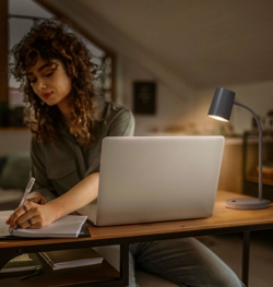 Elastyczne ramię ułatwia regulację kierunku światła. Niezależnie od tego, czy czytasz, piszesz, czy pracujesz przy ekranie, oświetlenie można dostosować do Twojej pozycji roboczej i zadania bez oślepiania. Lampa posiada oprawkę GU10, co daje możliwość wyboru spośród wielu źródeł światła o różnej jasności i temperaturze barwowej.