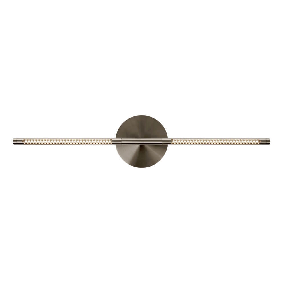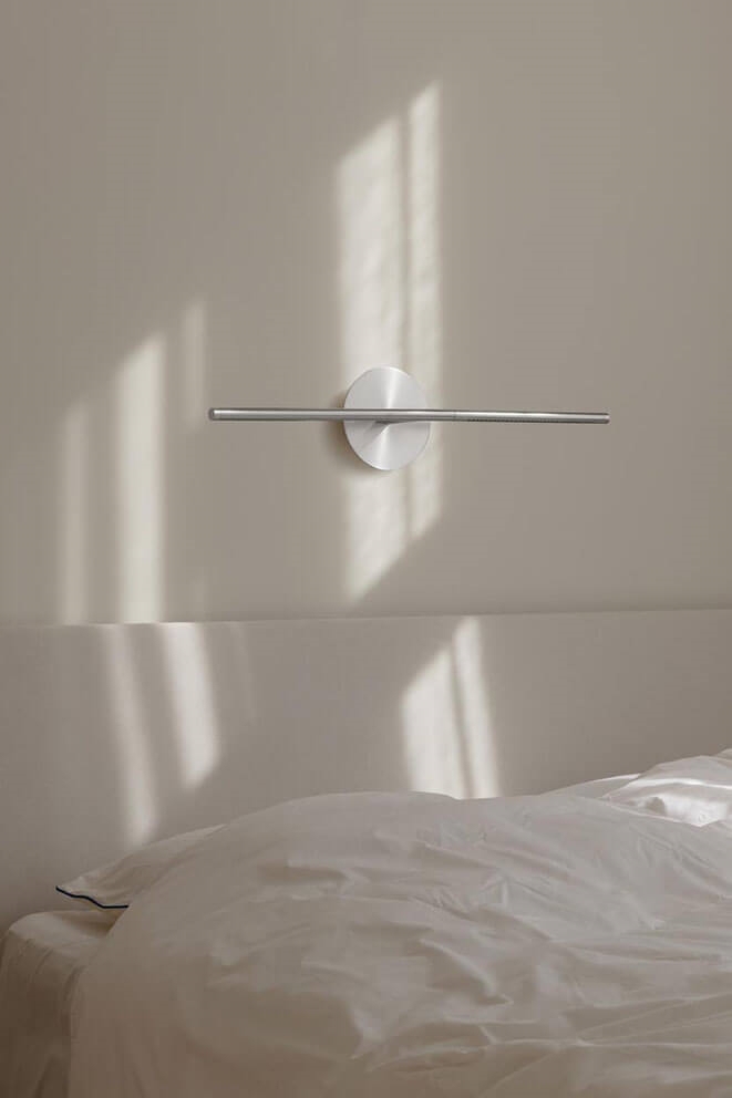 Omni kinkiet dostarcza miękkie i ciepłe światło z paneli świetlnych lampy. Lampa posiada ściemniacz umieszczony na podstawie, dzięki czemu możesz samodzielnie regulować intensywność światła. Elastyczny design pozwala na obrót lampy o 360°.