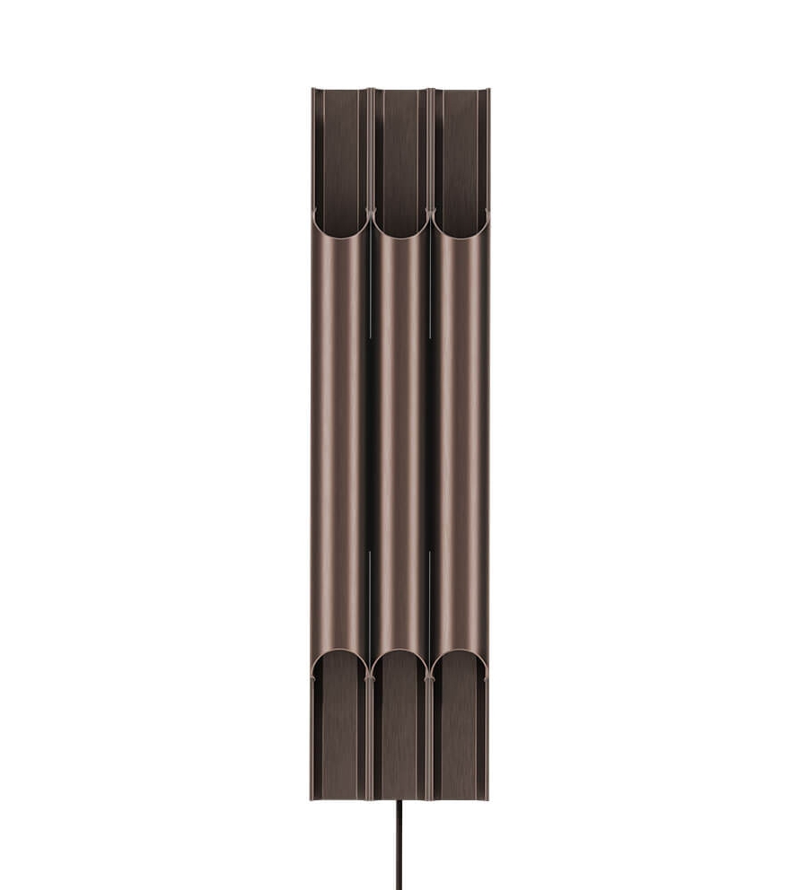 Kinkiet Pan 50 III to piękny i dekoracyjny projekt autorstwa Bent Karlby, inspirowany fletnią Pana. Lampa tworzy piękną grę świateł na ścianie dzięki otworom na górze i dole trzech błyszczących rur świetlnych z anodowanego aluminium z brązowym wykończeniem. Dwa źródła światła w każdej rurze zapewniają jednolite, miękkie światło z góry i dołu.