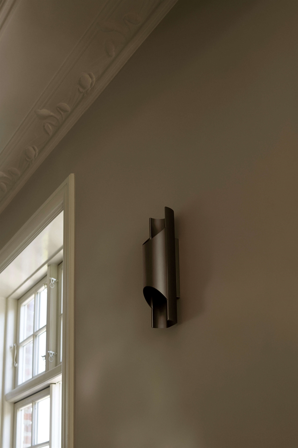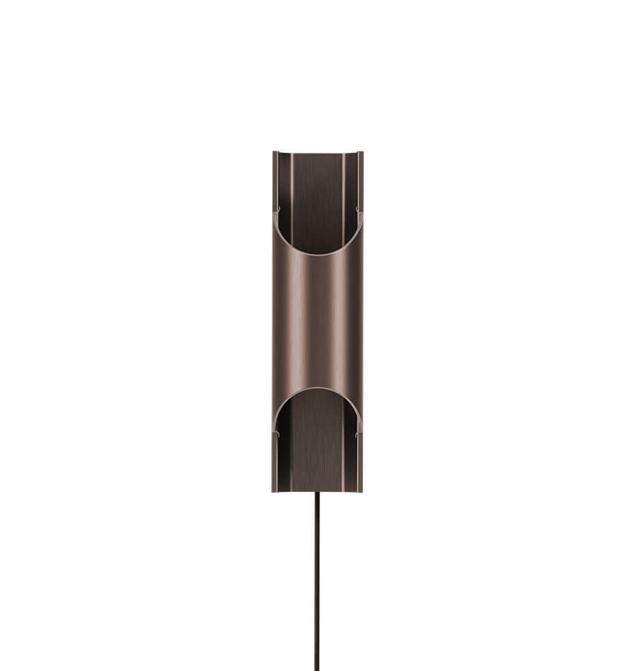 Kinkiet Pan 95 to piękny i dekoracyjny projekt autorstwa Benta Karlby, inspirowany fletnią Pana. Lampa tworzy piękną grę świateł na ścianie dzięki otworom na górze i dole błyszczącej rurki świetlnej z anodowanego aluminium z brązowym wykończeniem. Dwa źródła światła zapewniają jednolite, miękkie światło z góry i dołu.