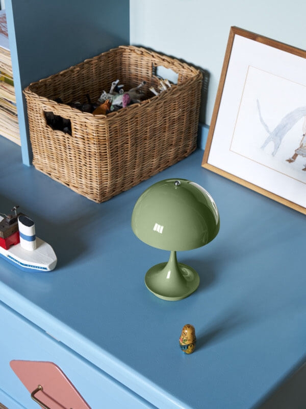 Louis Poulsen Panthella 160 Portable V3 lampa stołowa/lampa bateryjna, opaque moss zielony - zaprojektowana przez Verner Panton
