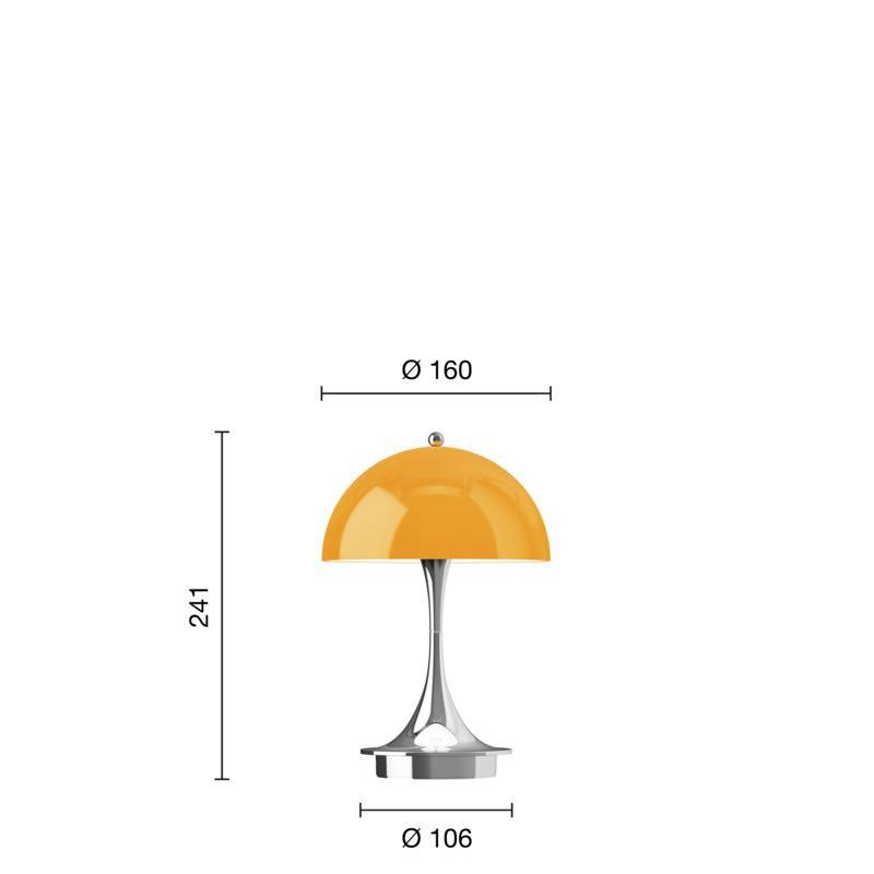 Louis Poulsen Panthella 160 Portable V3 lampa stołowa/lampa bateryjna, chrom/originalny pomarańczowy opal - zaprojektowana przez Verner Panton