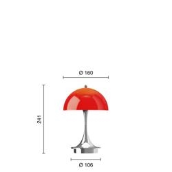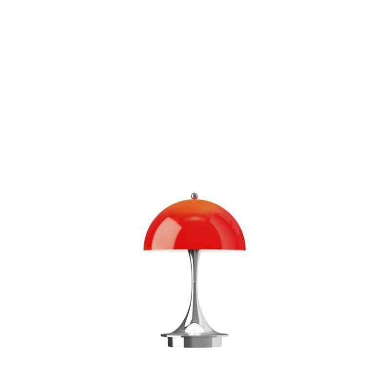 Louis Poulsen Panthella 160 Portable V3 lampa stołowa/lampa bateryjna, chrom/originalna czerwona opal - zaprojektowana przez Verner Panton