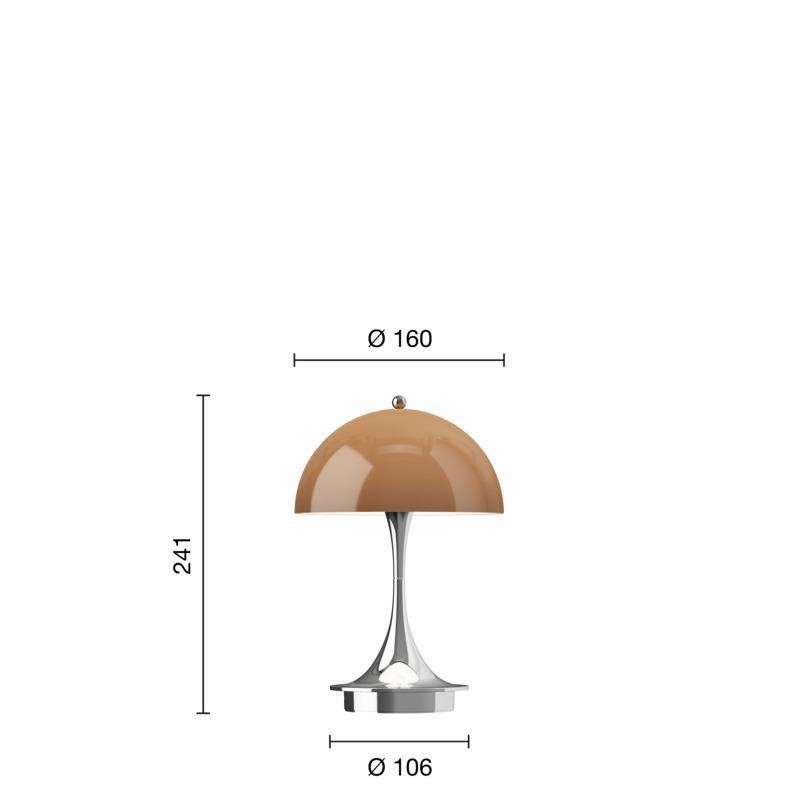 Louis Poulsen Panthella 160 Portable V3 lampa stołowa/lampa bateryjna, chrom/originalny brązowy opal - zaprojektowana przez Vernera Pantona