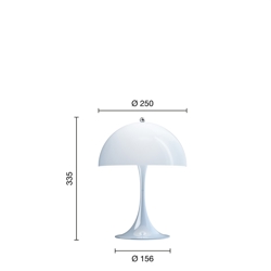 Panthella 250 lampa stołowa ma płynną regulację ściemniania od 15 do 100%, a ponadto można ustawić timer, kiedy światło ma się wyłączyć, z możliwością wyboru między wyłączonym/4 godziny/8 godzin.