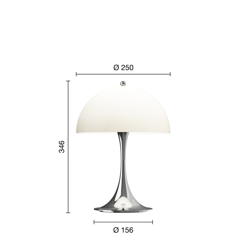 Louis Poulsen Panthella 250 Portable V3 lampa stołowa/lampa na baterie, chrom/beżowy opal - zaprojektowana przez Verner Panton