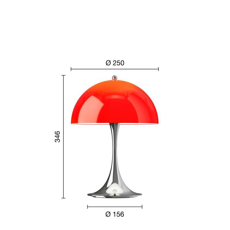 Louis Poulsen Panthella 250 Portable V3 lampa stołowa/lampa na baterie, chrom/originalna czerwona opal - zaprojektowana przez Verner Panton