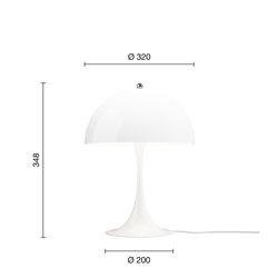 Louis Poulsen Panthella 320 lampa stołowa, biały opal - zaprojektowana przez Verner Panton