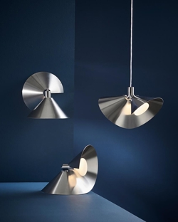 Peel dostępny jest jako zwis, lampka stołowa i kinkiet, które można łączyć, aby stworzyć spójność w aranżacji wnętrza.