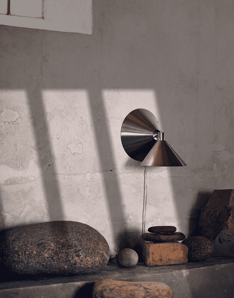 Kinkiet Peel ma innowacyjny design, gdzie korpus lampy wykonany jest z jednego kawałka stali nierdzewnej wyciętego w okrągły kształt z precyzyjnym nacięciem. Charakterystyczna forma lampy została stworzona przez holendersko-duńską projektantkę Sissel Gram Warringa i ma miękki wyraz, który zazwyczaj nie jest kojarzony z użyciem metalu.