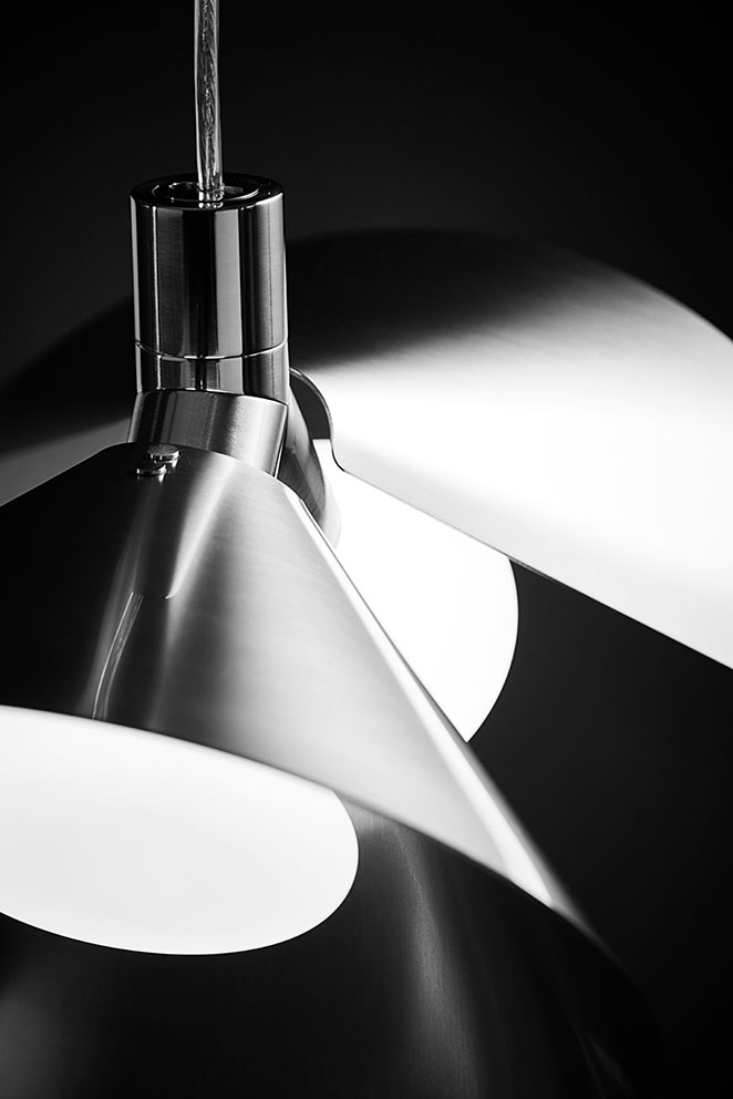 Pendel Peel ma innowacyjny design, gdzie korpus lampy wykonany jest z jednego kawałka stali nierdzewnej wyciętego w okrągły kształt z precyzyjnym nacięciem. Charakterystyczna forma lampy została stworzona przez holendersko-duńską projektantkę Sissel Gram Warringa i ma miękki wyraz, który zwykle nie jest kojarzony z użyciem metalu.