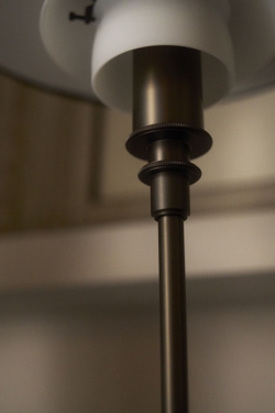 Numer lampy PH odnosi się do rozmiaru kloszy. Dlatego PH 3/2 lampa stołowa składa się z górnego klosza o średnicy około 30 cm i dolnych kloszy z wersji 2/2. Górny klosz w wersji Aged Brass lampy stołowej PH 3/2, podobnie jak podstawa i trzon lampy, wykonany jest z brązowionego mosiądzu i ma białą malowaną spodnią stronę, podczas gdy pozostałe dwa klosze są z dmuchanego szkła opalowego trójwarstwowego z błyszczącą górną stroną i matową piaskowaną spodnią stroną. Razem klosze zapewniają miękkie i harmonijne światło tworzące atmosferę.
