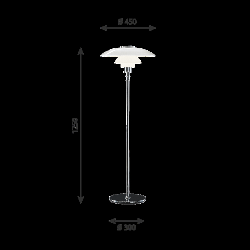 Numer lampy PH odnosi się do rozmiaru kloszy. Dlatego PH 4½-3½ lampa podłogowa składa się z górnego klosza o średnicy około 45 cm i dolnych kloszy z wersji 3½.