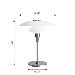 Louis Poulsen PH 4½-3½ lampa stołowa, chrom - zaprojektowana przez Poul Henningsen.