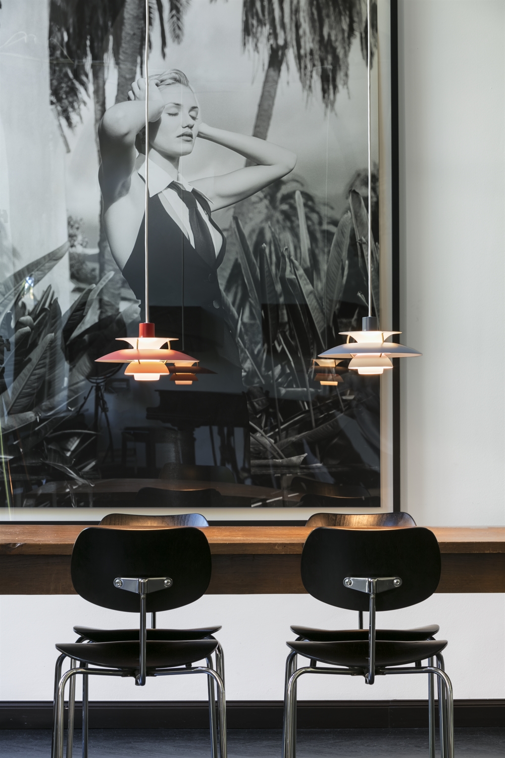 Lampa PH 5 została zaprojektowana na podstawie ikonicznego systemu trzech kloszy Poula Henningsena z 1926 roku, który zapewnia doskonałe, nieoślepiające rozproszenie światła.