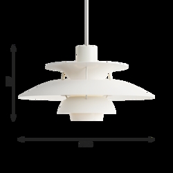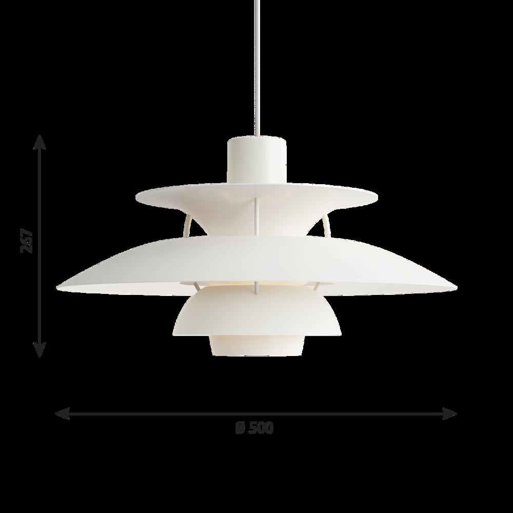Numer lampy PH odnosi się do rozmiaru kloszy. Dlatego lampa PH 5 składa się z górnego klosza o średnicy ok. Ø50 cm.