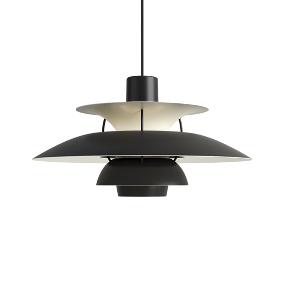 Louis Poulsen PH 5 lampa wisząca, monochromatyczna czerń - zaprojektowana przez Poul Henningsen.