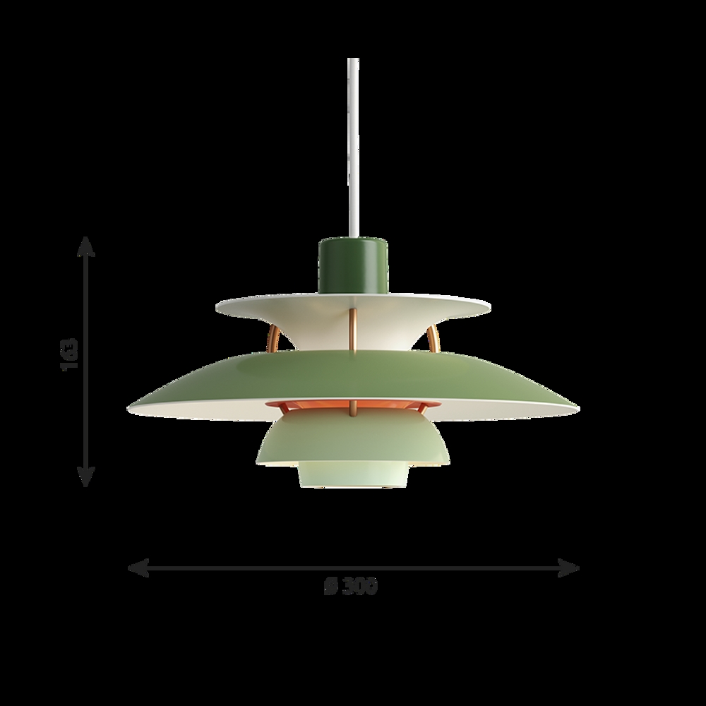 Louis Poulsen PH 5 Mini lampa wisząca, hues of green - zaprojektowana przez Poul Henningsen.