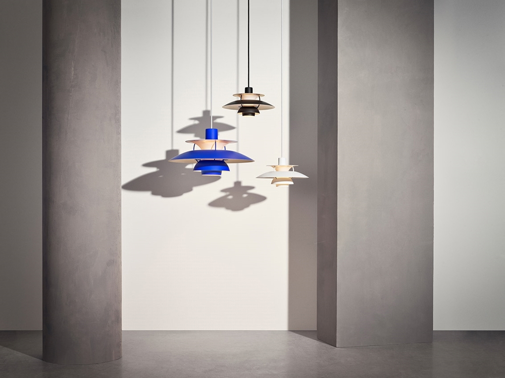 Lampa PH 5 została zaprojektowana na podstawie ikonicznego systemu trzech kloszy Poul Henningsena z 1926 roku, który zapewnia doskonałe, nieoślepiające rozproszenie światła.