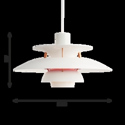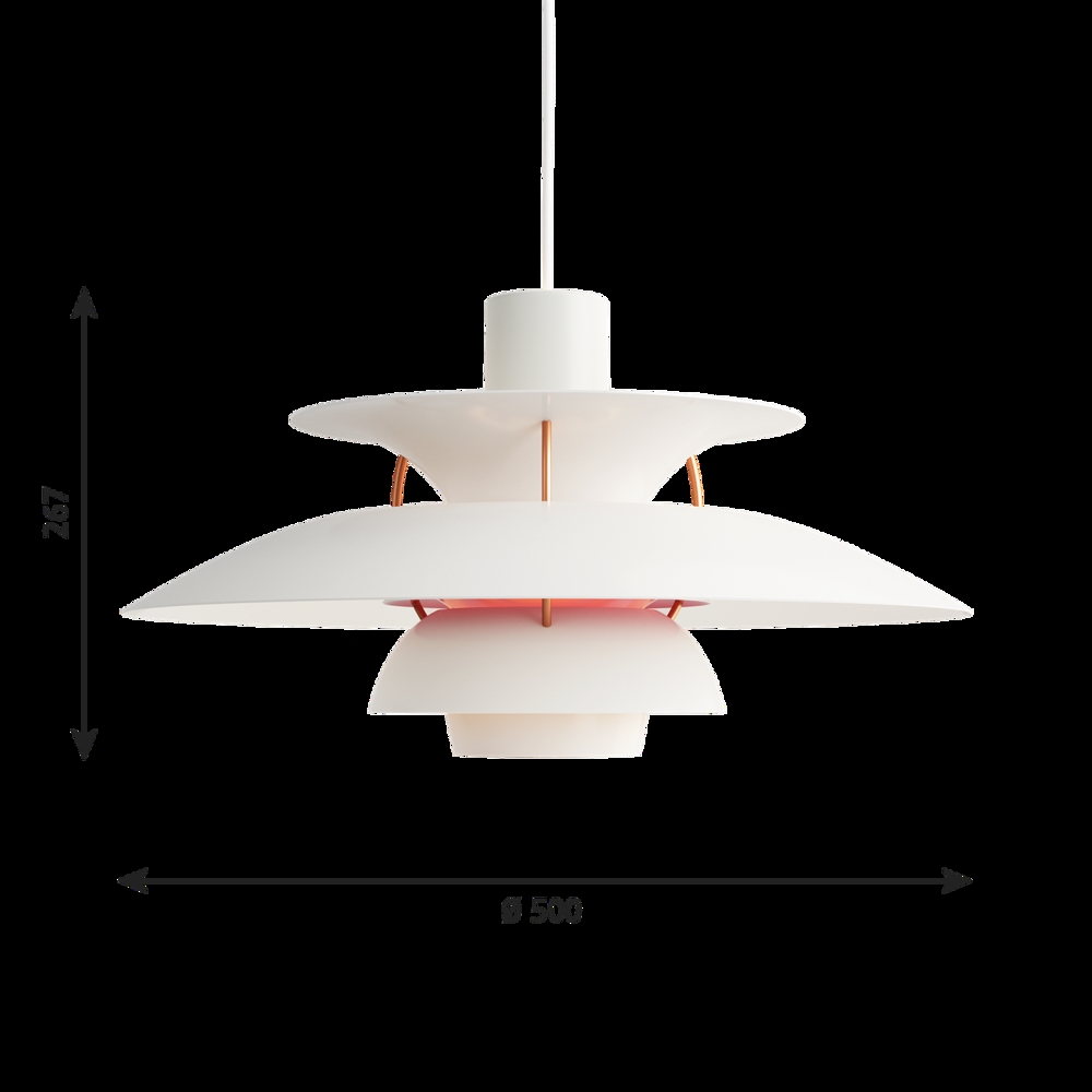 Numer lampy PH odnosi się do rozmiaru kloszy. Dlatego PH 5 pendel składa się z górnego klosza o średnicy ok. Ø50 cm.