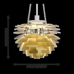 Płytki w PH Artichoke wykonane są z laserowo ciętego mosiądzu, miedzi, stali nierdzewnej, a osłona jest w kolorze białym lub czarnym, pokryta stalą z białym dnem. Stelaż wykonany jest z wysoko polerowanej, laserowo ciętej stali, a zawieszenie z wysoko polerowanego, pokrytego aluminium.