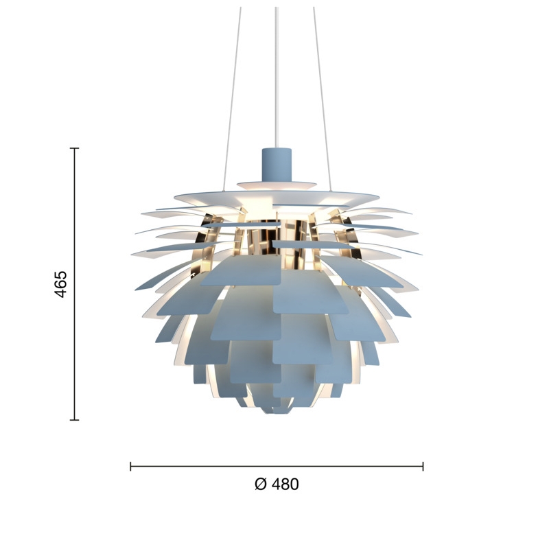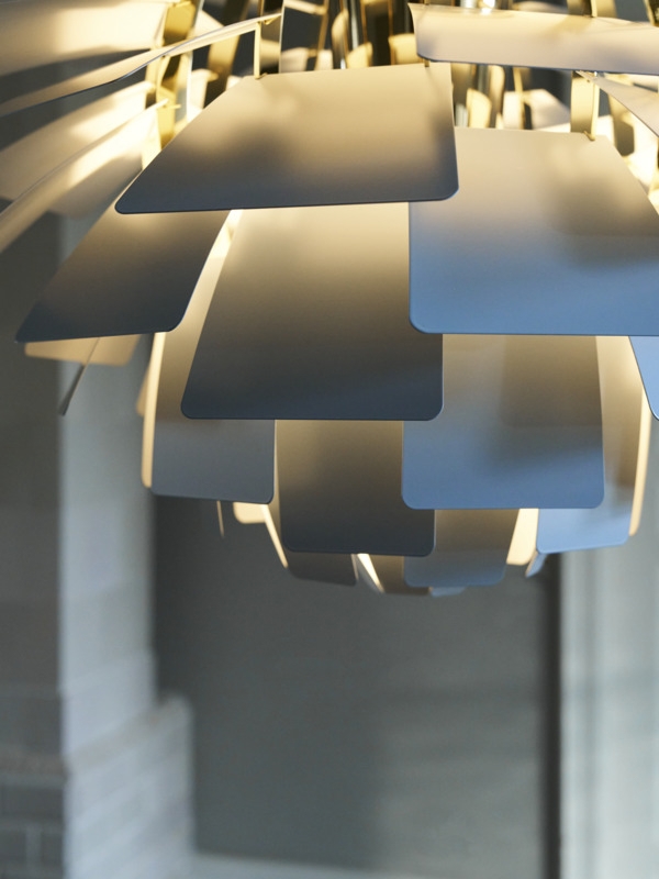 Niezależnie od kąta, z którego patrzymy na wyjątkowy PH Artichoke pendel, emituje on przyjemne, nieoślepiające światło. Jest to możliwe dzięki 72 metalowym płytkom, które tworzą 12 precyzyjnych rzędów po sześć płytek.