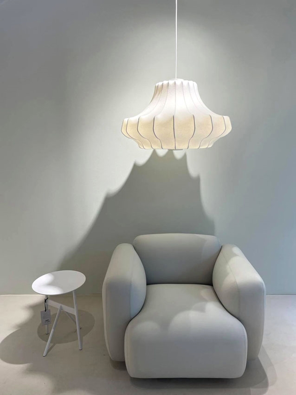 Lampa jest wykonana poprzez natryskiwanie cienkich nici ognioodpornej żywicy na stalową ramę. Wiele warstw nici tworzy klosz lampy, dokładnie tak jak jedwabnik tworzy swój kokon.
