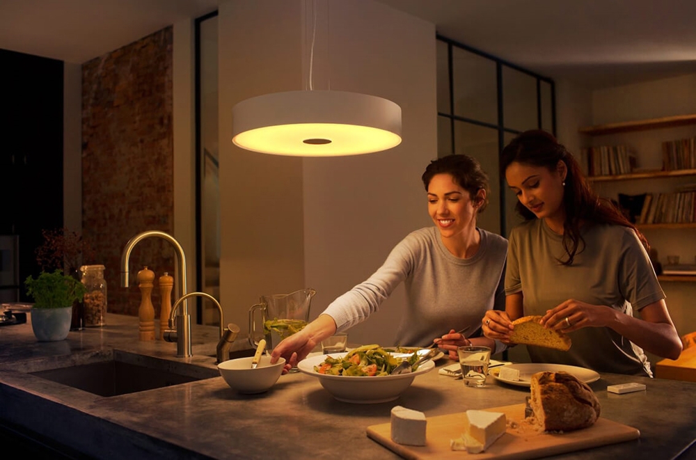 Ta lampa wisząca Philips Hue Fair jest specjalnie zaprojektowana do salonu i sypialni.