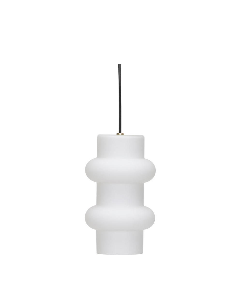 Lampa wisząca Pilule łączy nostalgię z nowoczesnością w kompaktowym, rzeźbiarskim designie. Zainspirowana stylem lat 80. i z wyraźnym naciskiem na nowoczesne wnętrza, ta wersja lampy wiszącej została stworzona z matowym białym kloszem z dmuchanego opalowego szkła, ciepłymi detalami z mosiądzu i wyrazistym czarnym przewodem materiałowym.