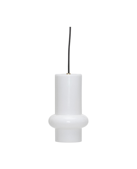 Lampa wisząca Pilule to studium formy i nastroju. Zainspirowana zabawnym designem lat 80., zinterpretowana z nowoczesną lekkością, ta wersja z błyszczącym białym kloszem z dmuchanego opalowego szkła wprowadza spokojne, rozproszone światło do wnętrza.