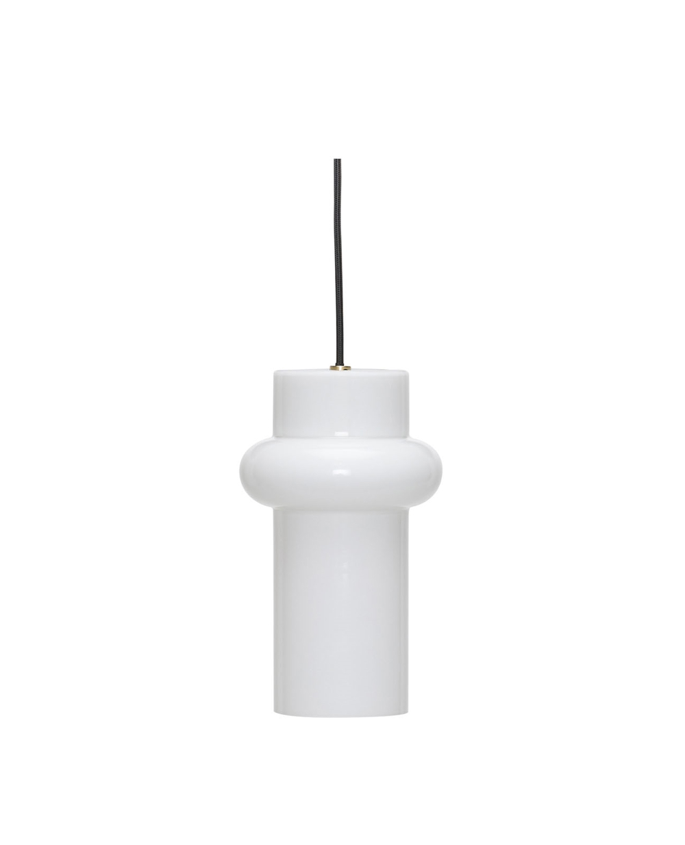 Pilule łączy w sobie wyraźny i współczesny wygląd z odniesieniami do stylu lat 80. Błyszczący biały klosz z dmuchanego opalowego szkła rozprasza przyjemne i równomierne światło, a delikatne detale z mosiądzu i czarny materiałowy przewód dodają lampie charakteru i kontrastu.