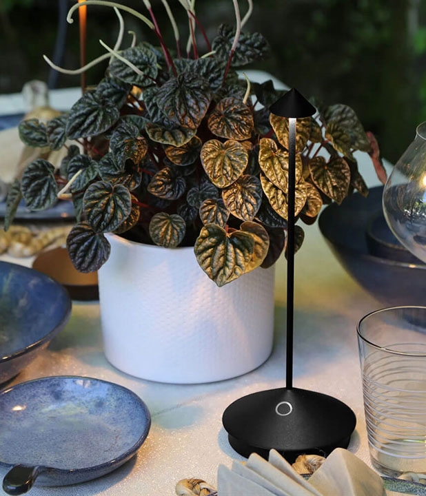Lampa bateryjna Pina ma stylowy design z dyskretną głowicą lampy na smukłej nodze z solidną podstawą. Ta przenośna lampka stołowa jest łatwa do przenoszenia i można regulować jej jasność, aby dopasować światło do pożądanej atmosfery za pomocą funkcji dotykowej na podstawie. Tutaj wybiera się również temperaturę barwową: 2200K, 2700K lub 3000K. Ustawienie temperatury barwowej może być zapamiętane dzięki funkcji pamięci.