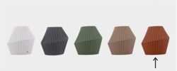 Pleat ma lekką i klasyczną formę i jest dostępny zarówno jako lampa wisząca, jak i lampa podłogowa z abażurami w dwóch różnych rozmiarach i pięciu różnych kolorach - off white, antracyt, deep green/zielony, sand taupe i cinnamon brown/brązowy.