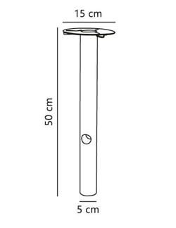 Wymiary: Wys. 50 x Ø5 cm, góra: Ø15 cm