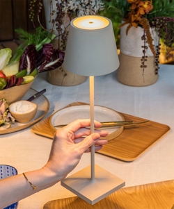 Lampka stołowa jest łatwa do przenoszenia i można ją przyciemniać za pomocą funkcji dotykowej na górze klosza, aby dostosować światło do pożądanej atmosfery. Temperaturę barwową 2200K, 2700K lub 3000K można również wybrać za pomocą funkcji dotykowej, a pamięć zapamiętuje ustawienia.