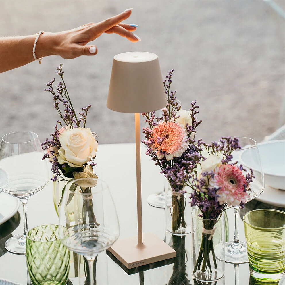 Zafferano Poldina Pro lampa bateryjna/lampka stołowa, piaskowa